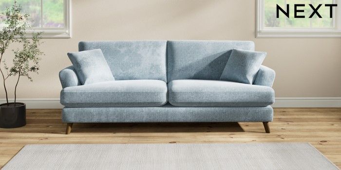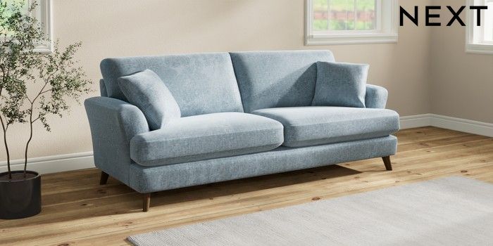 7.2.10 Conway Relaxed Sit 3 Seater Sofa Plush Chenille Light Blue Low Retro Tapered - Mid | Made Click here to use our website with more accessibility support, for example screen readers