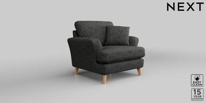 7.2.10 Conway Relaxed Sit Armchair Boucle Weave Easy Clean Charcoal Grey Low Retro Tapered - Light | Made Click here to use our website with more accessibility support, for example screen readers