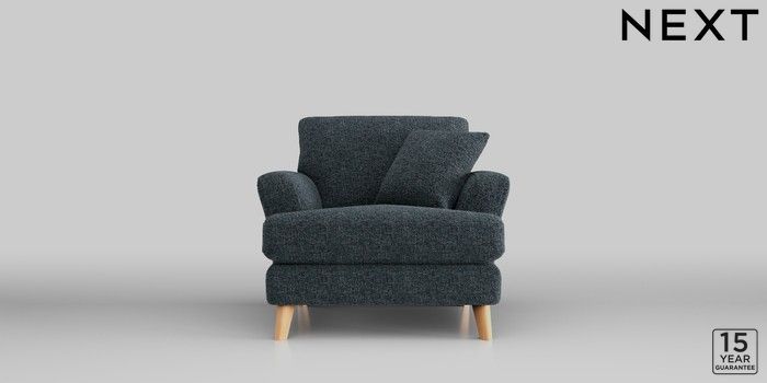 7.2.10 Conway Relaxed Sit Armchair Chunky Chenille Dark Navy Blue Low Retro Tapered - Light | Made Click here to use our website with more accessibility support, for example screen readers