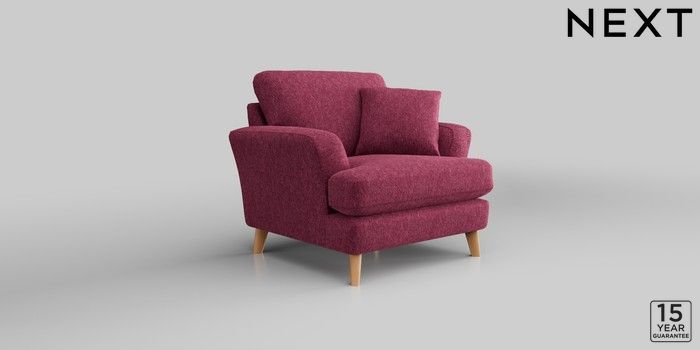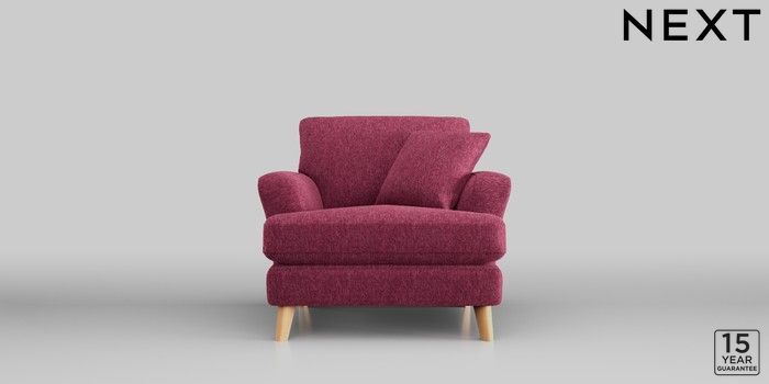 7.2.10 Conway Relaxed Sit Armchair Cotswold Chenille Dark Raspberry Pink Low Retro Tapered - Light | Made Click here to use our website with more accessibility support, for example screen readers