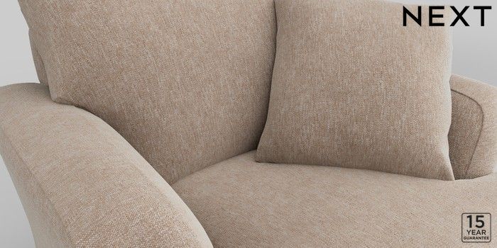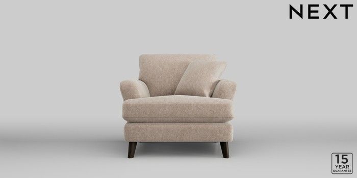 7.2.10 Conway Relaxed Sit Armchair Cotswold Chenille Light Natural Low Retro Tapered - Dark | Made Click here to use our website with more accessibility support, for example screen readers