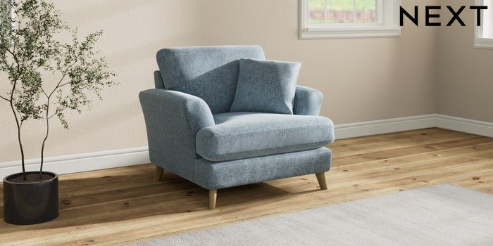 7.2.10 Conway Relaxed Sit Armchair Plush Chenille Light Blue Low Retro Tapered - Light | Made Click here to use our website with more accessibility support, for example screen readers