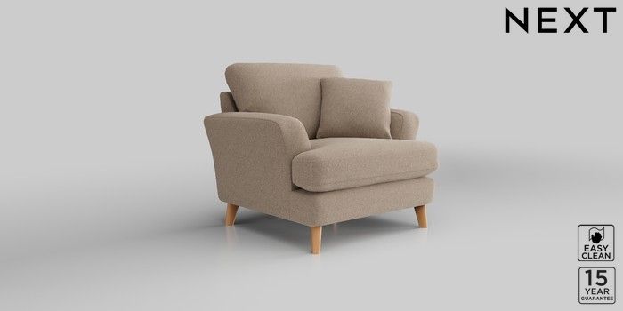7.2.10 Conway Relaxed Sit Armchair Tweedy Blend Easy Clean Light Dove Natural Low Retro Tapered - Light | Made Click here to use our website with more accessibility support, for example screen readers
