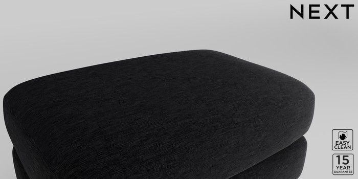 7.2.10 Conway Relaxed Sit Footstool Fine Chenille Easy Clean Black Low Retro Tapered - Light | Made Click here to use our website with more accessibility support, for example screen readers
