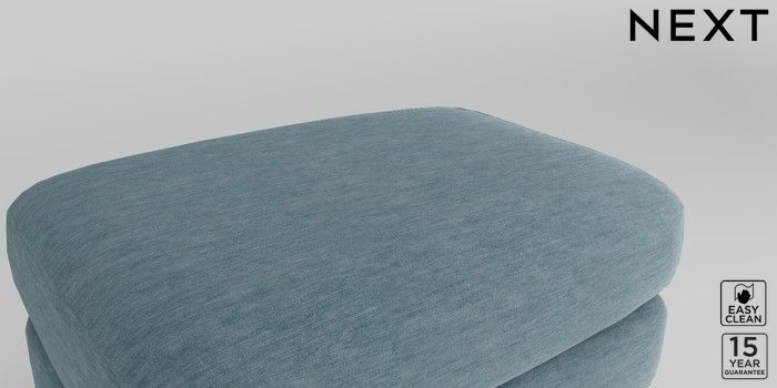 7.2.10 Conway Relaxed Sit Footstool Fine Chenille Easy Clean Mid Blue Low Retro Tapered - Light | Made Click here to use our website with more accessibility support, for example screen readers