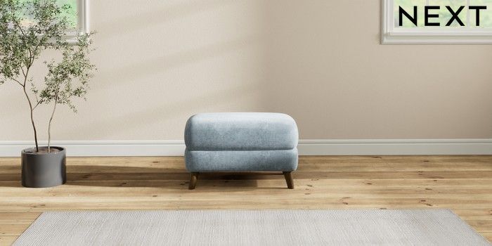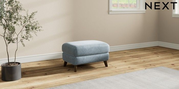 7.2.10 Conway Relaxed Sit Footstool Plush Chenille Light Blue Low Retro Tapered - Mid | Made Click here to use our website with more accessibility support, for example screen readers