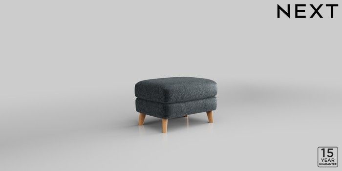 7.2.10 Conway Relaxed Sit Footstool Plush Chenille Slate Blue Low Retro Tapered - Light | Made Click here to use our website with more accessibility support, for example screen readers