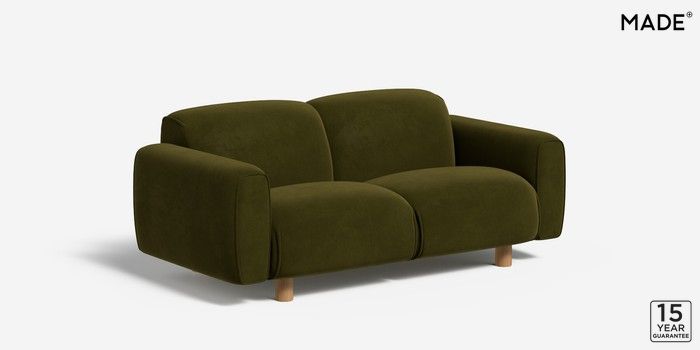 6.12.1 Diego by Made 2 Seater Sofa Matt Velvet Easy Clean Deep Olive Green Round - Oak | Made Click here to use our website with more accessibility support, for example screen readers