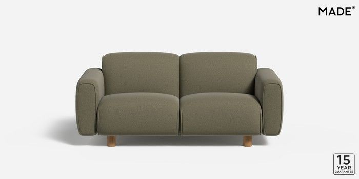 6.12.1 Diego by Made 2 Seater Sofa Textured Slub Weave Soft Olive Green Round - Oak | Made Click here to use our website with more accessibility support, for example screen readers
