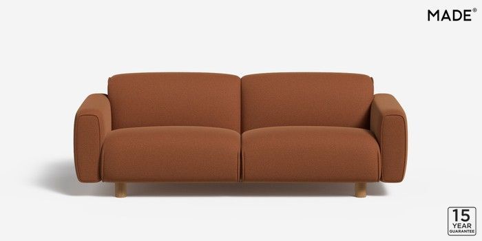 6.12.1 Diego by Made 3 Seater Small Sofa Made Weave Dark Terracotta Orange Round - Oak | Made Click here to use our website with more accessibility support, for example screen readers