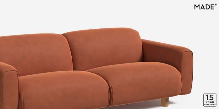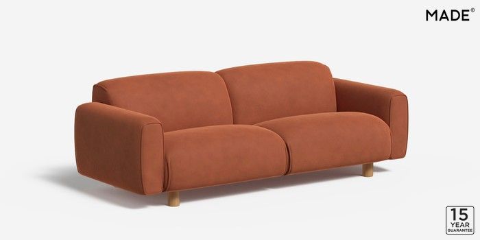 6.12.1 Diego by Made 3 Seater Small Sofa Matt Velvet Easy Clean Burnt Orange Round - Oak | Made Click here to use our website with more accessibility support, for example screen readers