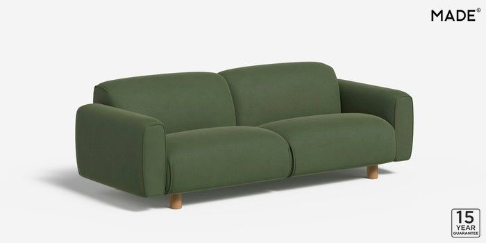 6.12.1 Diego by Made 3 Seater Small Sofa Matt Velvet Easy Clean Grass Green Round - Oak | Made Click here to use our website with more accessibility support, for example screen readers