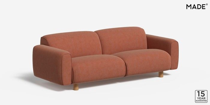 6.12.1 Diego by Made 3 Seater Small Sofa Soft Chenille Easy Clean Paprika Orange Round - Oak | Made Click here to use our website with more accessibility support, for example screen readers