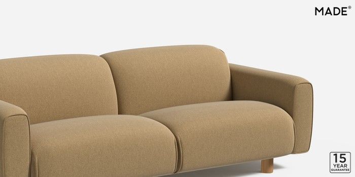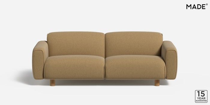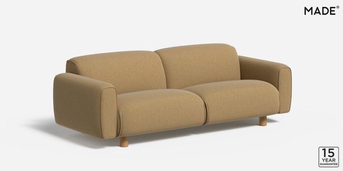6.12.1 Diego by Made 3 Seater Small Sofa Textured Slub Weave Caramel Natural Round - Oak | Made Click here to use our website with more accessibility support, for example screen readers