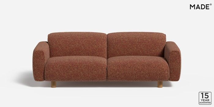 6.12.1 Diego by Made 3 Seater Small Sofa Tonal Boucle Maroon Red and Light Caramel Round - Oak | Made Click here to use our website with more accessibility support, for example screen readers