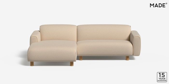 6.12.1 Diego by Made Medium Sofa Chaise - Left Hand Made Weave Light Stone Natural Round - Oak | Made Click here to use our website with more accessibility support, for example screen readers