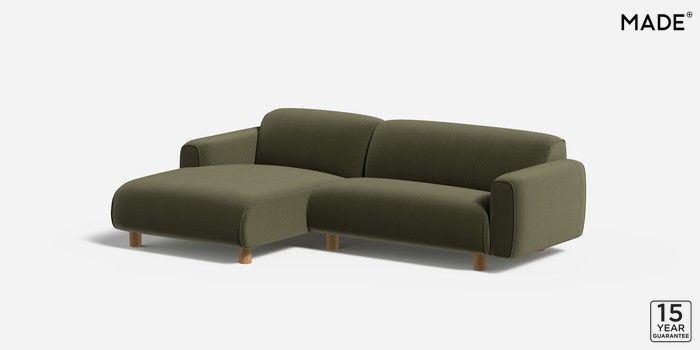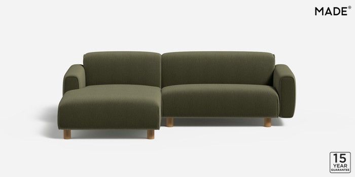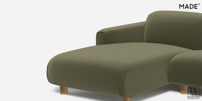 6.12.1 Diego by Made Medium Sofa Chaise - Left Hand Matt Corduroy Fennel Green Round - Oak | Made Click here to use our website with more accessibility support, for example screen readers