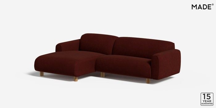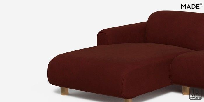 6.12.1 Diego by Made Medium Sofa Chaise - Left Hand Matt Velvet Easy Clean Rust Red Round - Oak | Made Click here to use our website with more accessibility support, for example screen readers