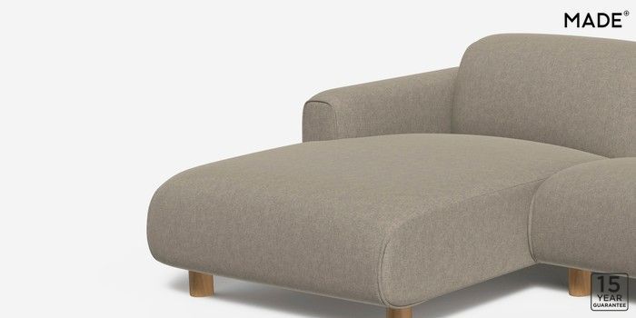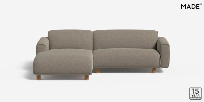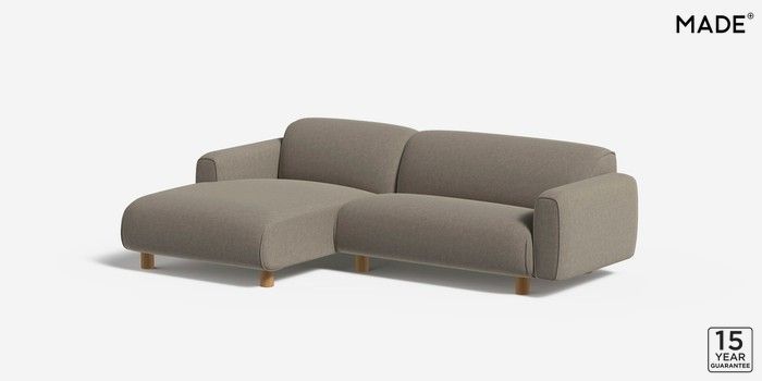 6.12.1 Diego by Made Medium Sofa Chaise - Left Hand Soft Chenille Easy Clean Pebble Grey Round - Oak | Made Click here to use our website with more accessibility support, for example screen readers