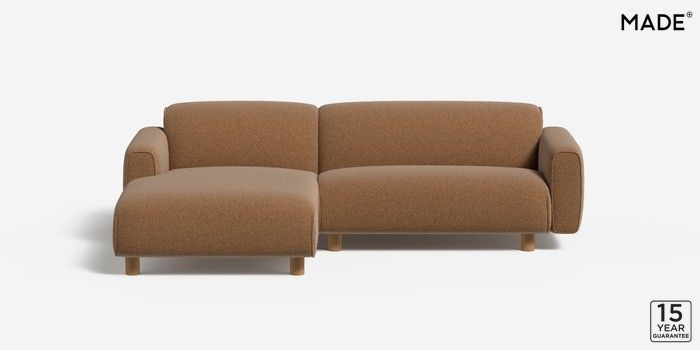 6.12.1 Diego by Made Medium Sofa Chaise - Left Hand Soft Touch Boucle Caramel Natural Round - Oak | Made Click here to use our website with more accessibility support, for example screen readers