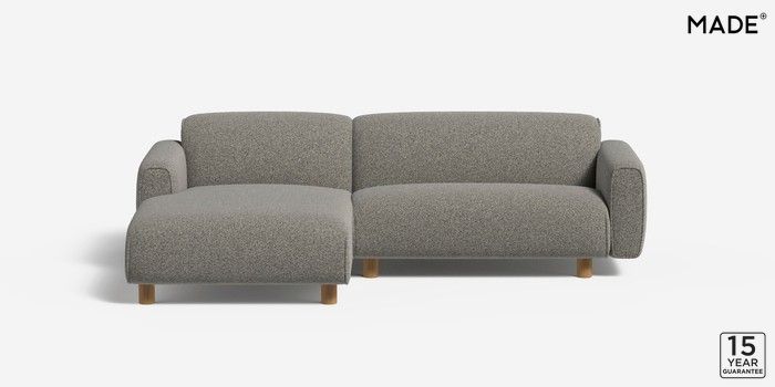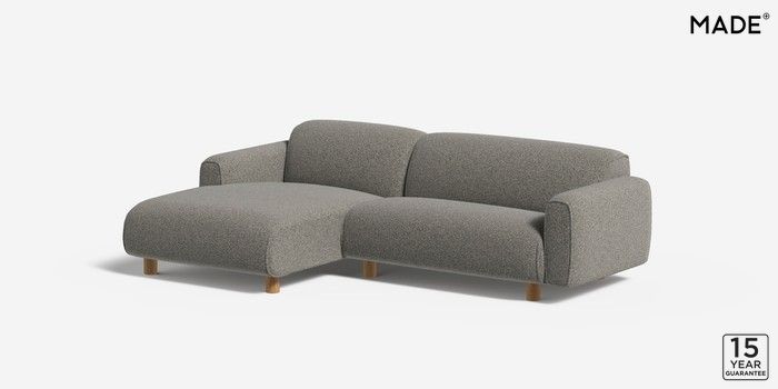 6.12.1 Diego by Made Medium Sofa Chaise - Left Hand Soft Touch Boucle Grey Marl Round - Oak | Made Click here to use our website with more accessibility support, for example screen readers