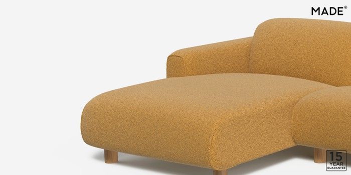 6.12.1 Diego by Made Medium Sofa Chaise - Left Hand Soft Touch Boucle Ochre Yellow Round - Oak | Made Click here to use our website with more accessibility support, for example screen readers