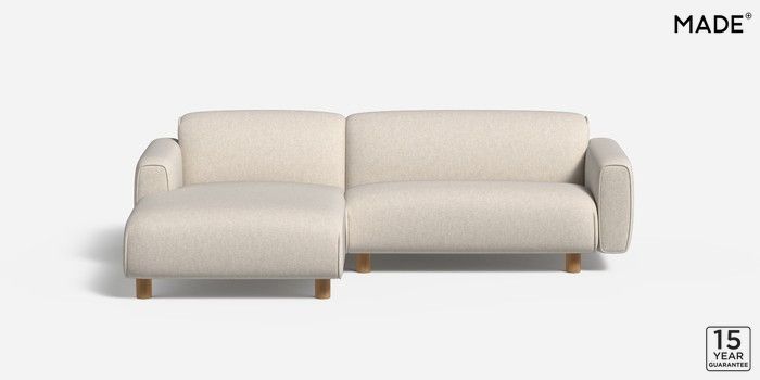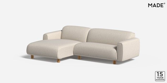6.12.1 Diego by Made Medium Sofa Chaise - Left Hand Textured Slub Weave Light Natural Round - Oak | Made Click here to use our website with more accessibility support, for example screen readers