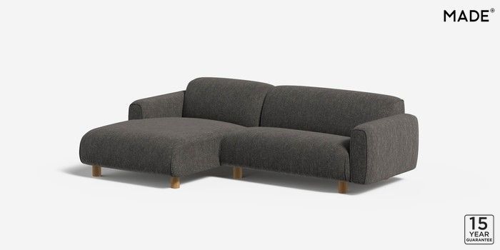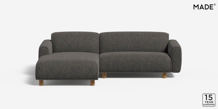 6.12.1 Diego by Made Medium Sofa Chaise - Left Hand Textured Woven Black Round - Oak | Made Click here to use our website with more accessibility support, for example screen readers