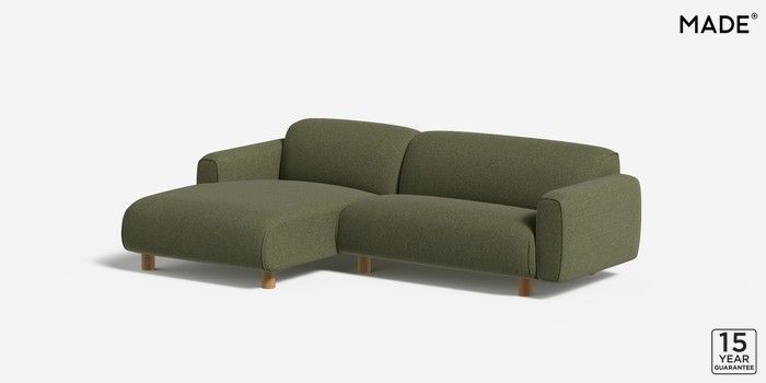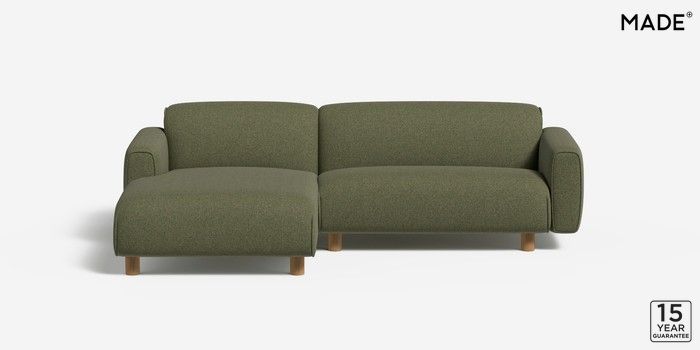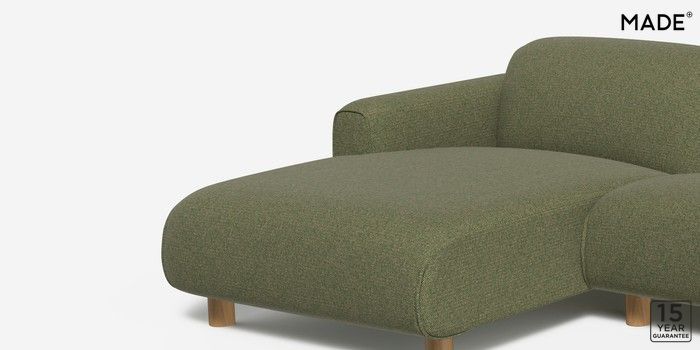 6.12.1 Diego by Made Medium Sofa Chaise - Left Hand Textured Woven Meadow Green Round - Oak | Made Click here to use our website with more accessibility support, for example screen readers