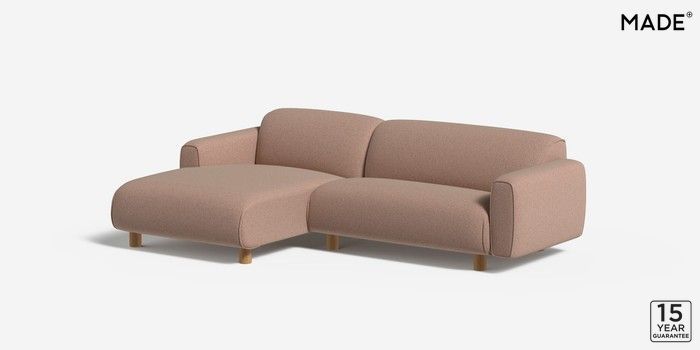 6.12.1 Diego by Made Medium Sofa Chaise - Left Hand Textured Woven Plaster Pink Round - Oak | Made Click here to use our website with more accessibility support, for example screen readers