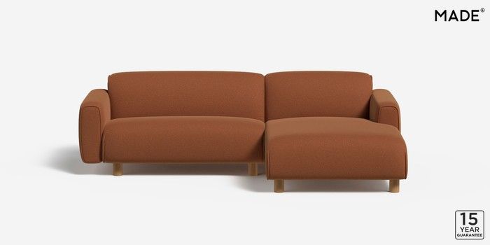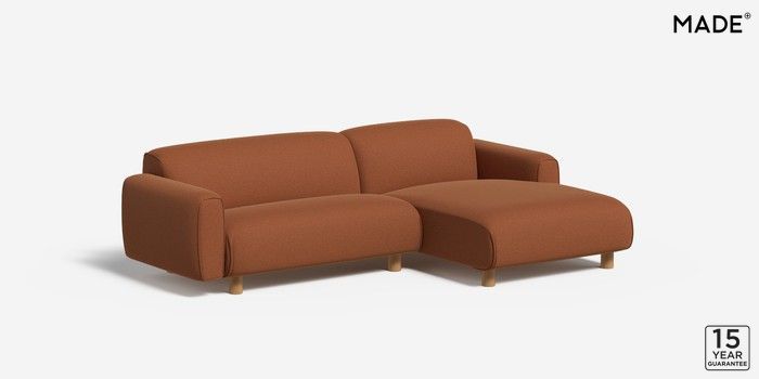 6.12.1 Diego by Made Medium Sofa Chaise - Right Hand Made Weave Dark Terracotta Orange Round - Oak | Made Click here to use our website with more accessibility support, for example screen readers