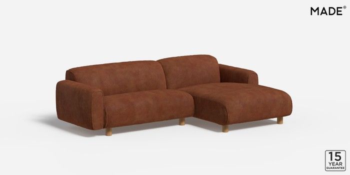 6.12.1 Diego by Made Medium Sofa Chaise - Right Hand Matt Corduroy Nutmeg Orange Round - Oak | Made Click here to use our website with more accessibility support, for example screen readers