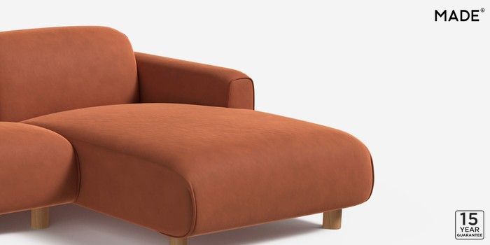 6.12.1 Diego by Made Medium Sofa Chaise - Right Hand Matt Velvet Easy Clean Burnt Orange Round - Oak | Made Click here to use our website with more accessibility support, for example screen readers