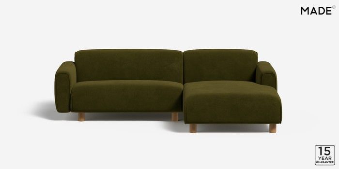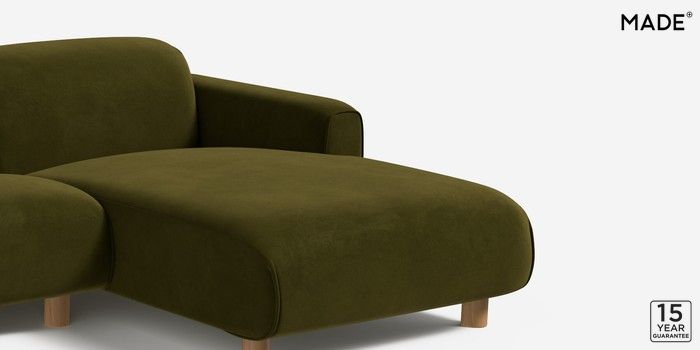6.12.1 Diego by Made Medium Sofa Chaise - Right Hand Matt Velvet Easy Clean Deep Olive Green Round - Oak | Made Click here to use our website with more accessibility support, for example screen readers