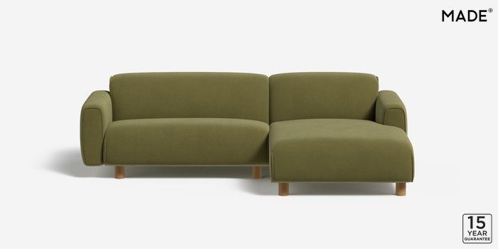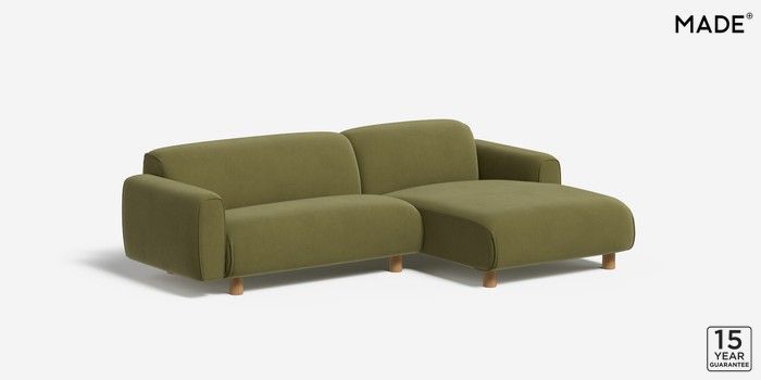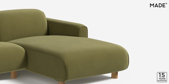 6.12.1 Diego by Made Medium Sofa Chaise - Right Hand Matt Velvet Easy Clean Fern Green Round - Oak | Made Click here to use our website with more accessibility support, for example screen readers