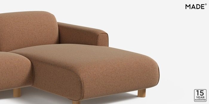 6.12.1 Diego by Made Medium Sofa Chaise - Right Hand Soft Chenille Easy Clean Dark Caramel Natural Round - Oak | Made Click here to use our website with more accessibility support, for example screen readers