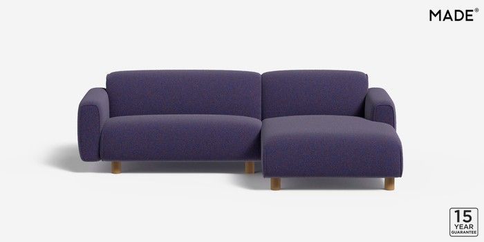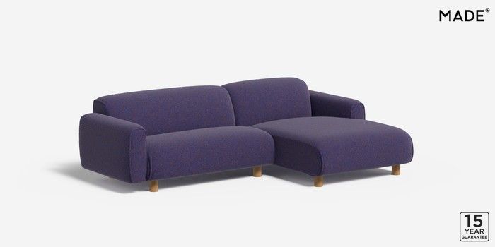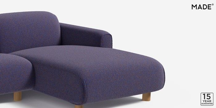 6.12.1 Diego by Made Medium Sofa Chaise - Right Hand Soft Touch Boucle Cobalt Blue Round - Oak | Made Click here to use our website with more accessibility support, for example screen readers