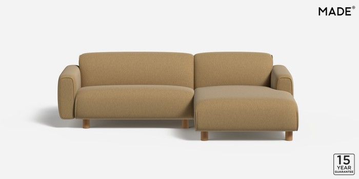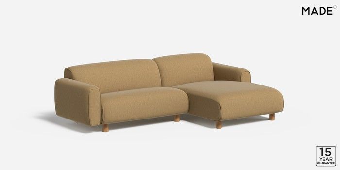 6.12.1 Diego by Made Medium Sofa Chaise - Right Hand Textured Slub Weave Caramel Natural Round - Oak | Made Click here to use our website with more accessibility support, for example screen readers