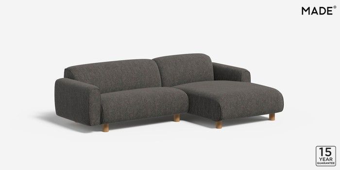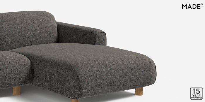 6.12.1 Diego by Made Medium Sofa Chaise - Right Hand Textured Woven Black Round - Oak | Made Click here to use our website with more accessibility support, for example screen readers