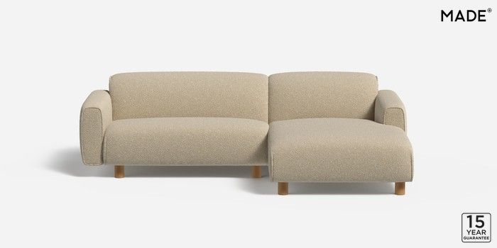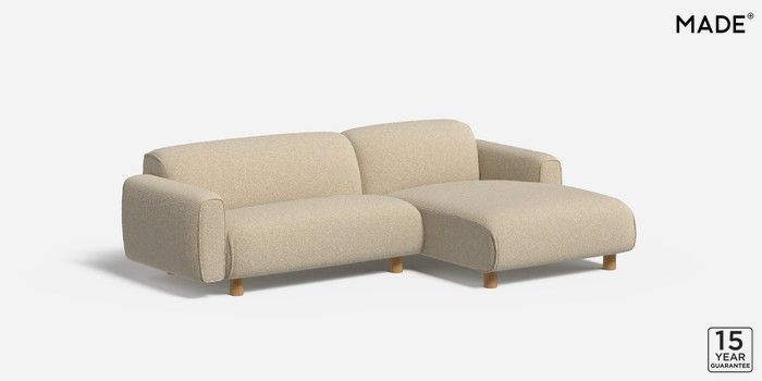 6.12.1 Diego by Made Medium Sofa Chaise - Right Hand Tonal Boucle Natural Oatmeal Round - Oak | Made Click here to use our website with more accessibility support, for example screen readers