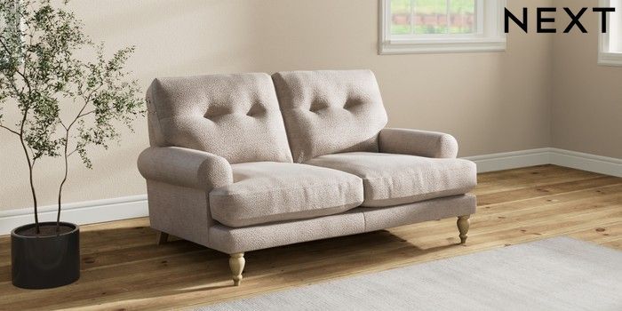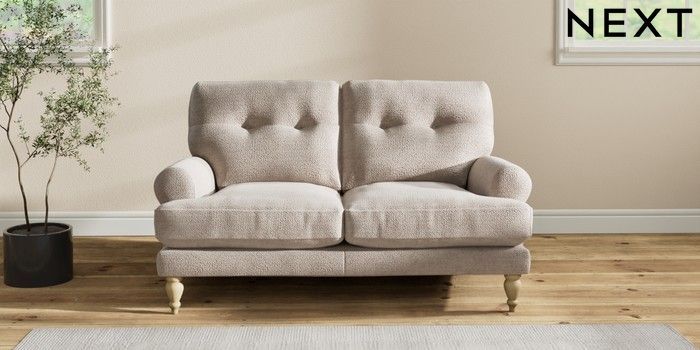 7.2.10 Erin Buttoned Back Deep Relaxed Sit 2 Seater Small Sofa Boucle Chenille Light Natural High Classic Turned - Light | Made Click here to use our website with more accessibility support, for example screen readers