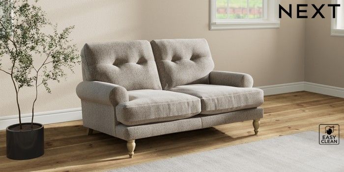 7.2.10 Erin Buttoned Back Deep Relaxed Sit 2 Seater Small Sofa Chunky Boucle Easy Clean Dove High Classic Turned - Light | Made Click here to use our website with more accessibility support, for example screen readers