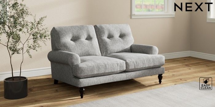 Add charm to your living space with the Erin Button Back Sofa. Its elegant scroll arms and classic button-back cushions create a timeless look. You'll love its "Relaxed Sit" cushions, specially designed for ultimate comfort. These cushions are made with clever foam and fibre, giving you a wonderfully soft, plump feel. To keep them looking their best, simply plump and turn them regularly. Plus, you can make the Erin your own by choosing from a huge range of coloured fabrics.