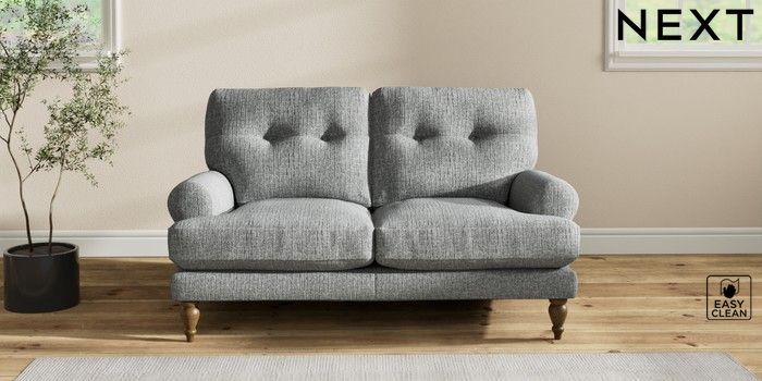 7.2.10 Erin Buttoned Back Deep Relaxed Sit 2 Seater Small Sofa Chunky Boucle Easy Clean Mid Grey High Classic Turned - Mid | Made Click here to use our website with more accessibility support, for example screen readers