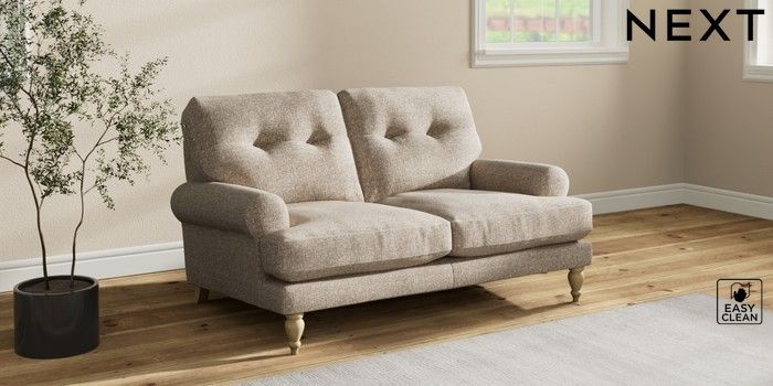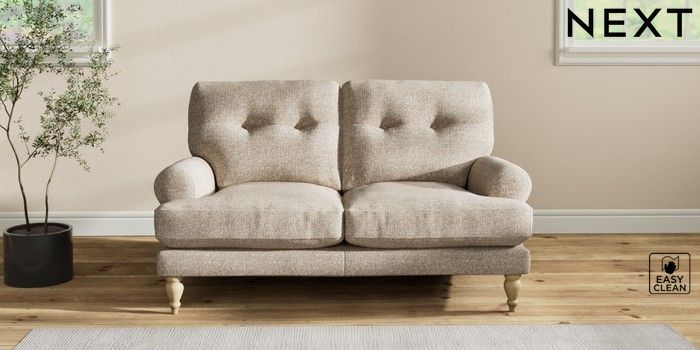 7.2.10 Erin Buttoned Back Deep Relaxed Sit 2 Seater Small Sofa Chunky Boucle Easy Clean Mid Natural High Classic Turned - Light | Made Click here to use our website with more accessibility support, for example screen readers