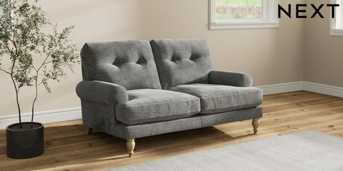 7.2.10 Erin Buttoned Back Deep Relaxed Sit 2 Seater Small Sofa Chunky Chenille Dark Grey High Classic Turned - Light | Made Click here to use our website with more accessibility support, for example screen readers