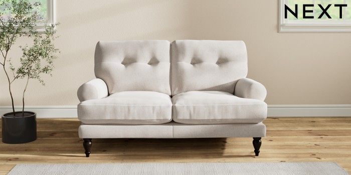 7.2.10 Erin Buttoned Back Deep Relaxed Sit 2 Seater Small Sofa Chunky Chenille Oyster High Classic Turned - Dark | Made Click here to use our website with more accessibility support, for example screen readers