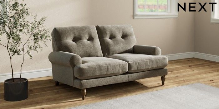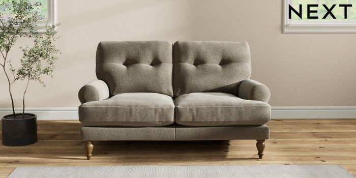 7.2.10 Erin Buttoned Back Deep Relaxed Sit 2 Seater Small Sofa Chunky Marl Light Olive Green High Classic Turned - Mid | Made Click here to use our website with more accessibility support, for example screen readers