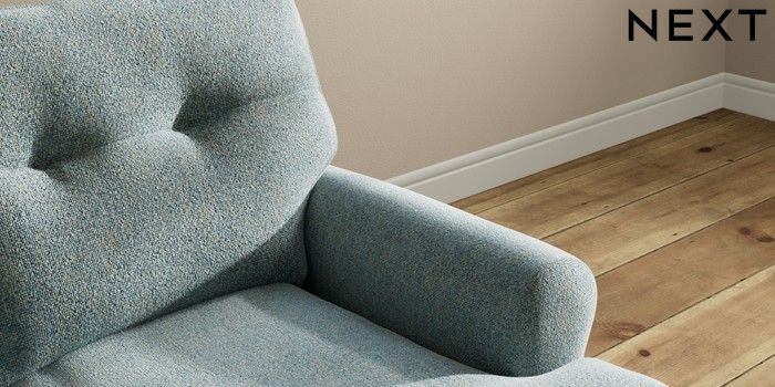 7.2.10 Erin Buttoned Back Deep Relaxed Sit 2 Seater Small Sofa Chunky Marl Mid Blue High Classic Turned Chrome Castor - Light | Made Click here to use our website with more accessibility support, for example screen readers