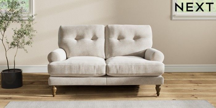 7.2.10 Erin Buttoned Back Deep Relaxed Sit 2 Seater Small Sofa Chunky Marl Oyster High Classic Turned - Mid | Made Click here to use our website with more accessibility support, for example screen readers